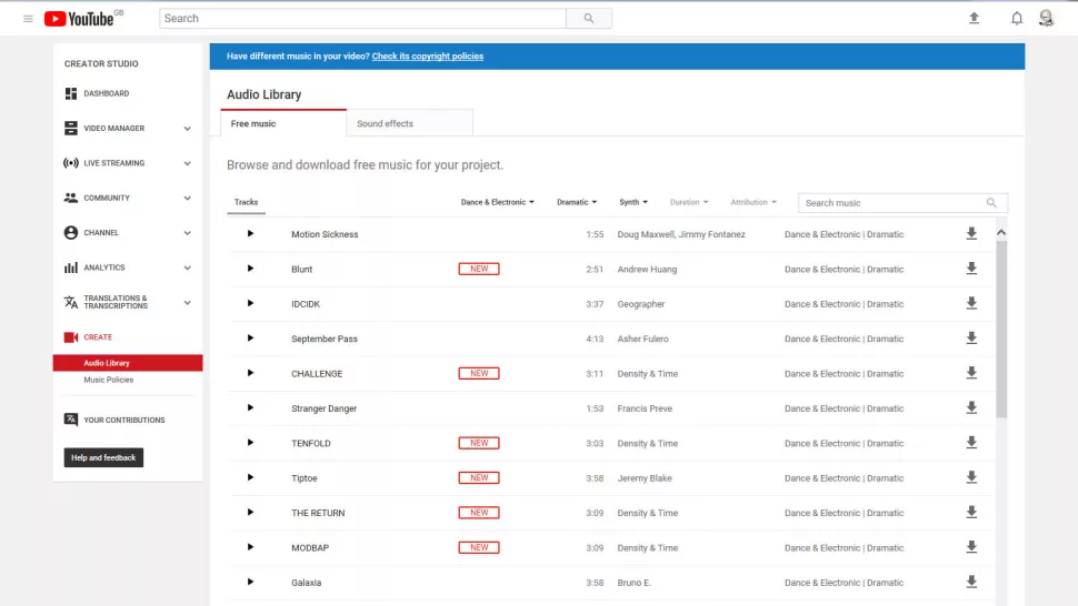 YouTube Audio Library