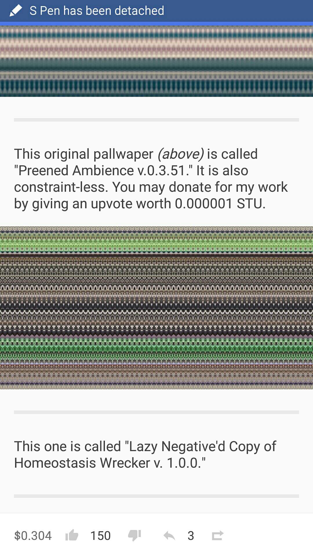 This original pallwaper *(above)* is called "Preened Ambience v.0.3.51." It is also constraint-less. You may donate for my work by giving an upvote worth 0.000001 STU.