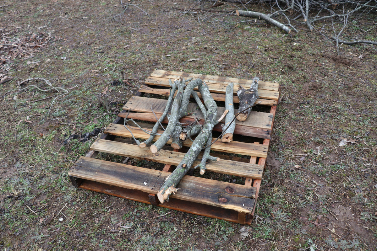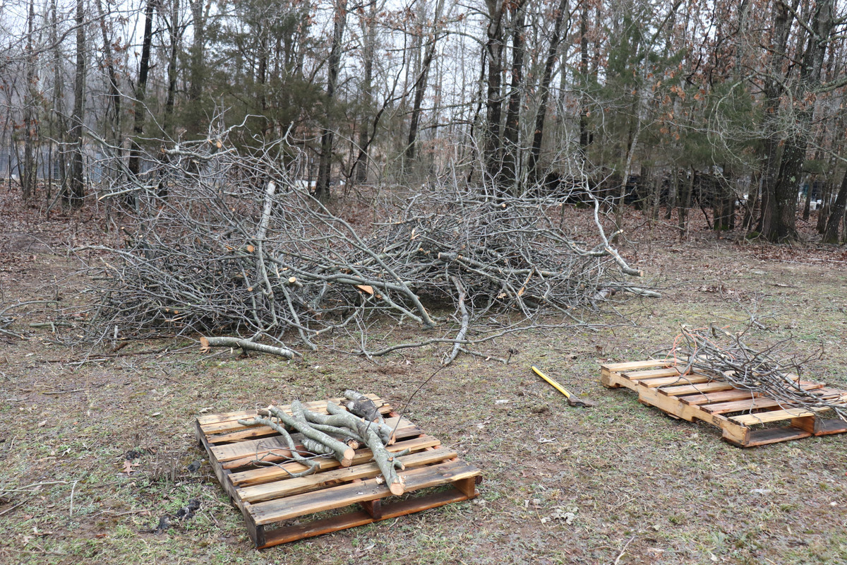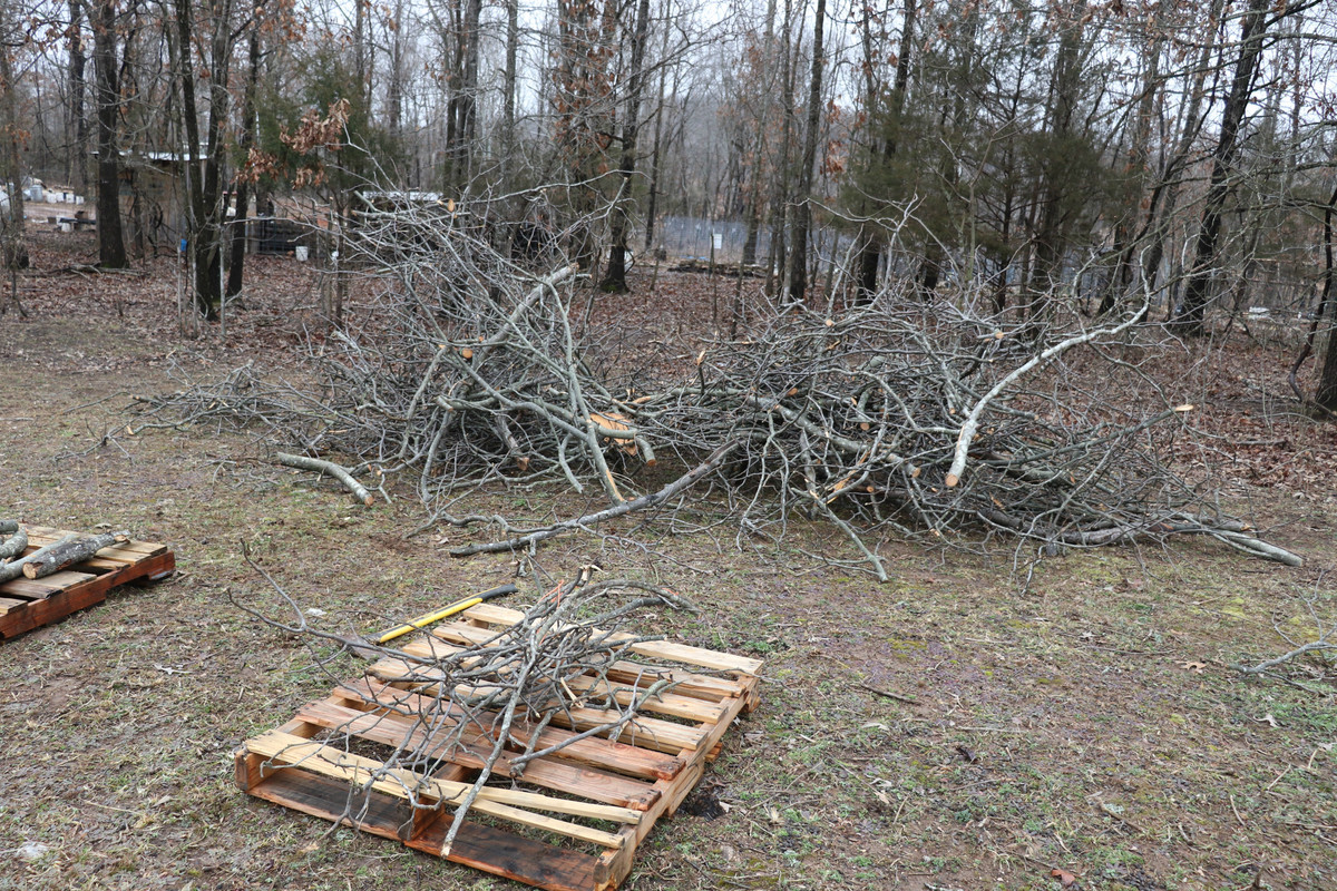 We had to take down a beast of a Hickory tree the other day for work, and while the major wood was going for firewood, the branches were going to be discarded, so I had them discarded here. With all of the meat smoking that we've been enjoying, I thought some Hickory would be great. My goal is to cut it into pieces and load it onto some pallets for storage. Soo, I hope to actually get a better little "hot-smoker" built, and then eventually a full-blown smokehouse!