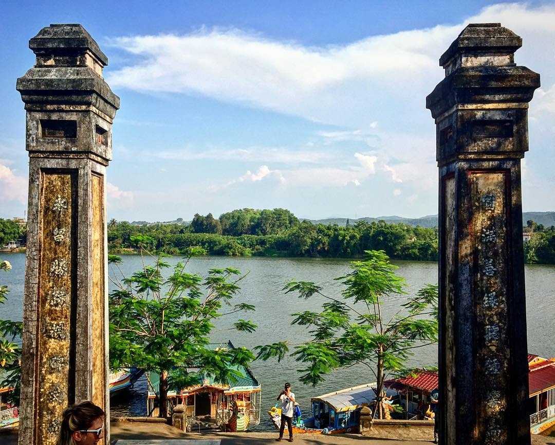 The Fragrant River framed by the palace pillars - named by a Chinese Emperor who instructed servants to plant many water lilies in the river so that it produced a sweet fragrance.