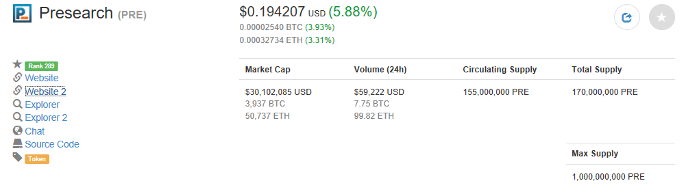 So, Presearch is a decentralized engine and every time that you use it you earn some (PRE)coins then you will enable to sell it when you want, (PRE) is in the rank 289 today 06/02/2018: