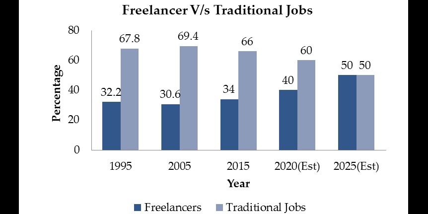 in this digital age, our thinking pattern has changed,What the word "Freelancing" meant for us this is source of extra income like its a students pocket money and earn some extra money. As per the US Government accountability Office int he year 2001 there were 33% Freelancer across united state out of its a majority portion by daily wage worker. This calculation remained almost the same after 2001, however its closed to near 31% in the year 2007, Which the reflecting the fact that people were not considering freelancing as the prime choice.