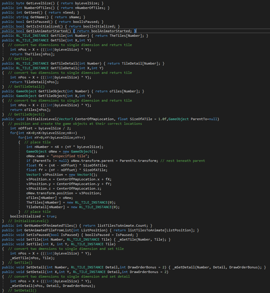 These are the majority of the remaining public methods. They enable interfacing with the data above. As you can see a lot of that data is treated as read only outside of the Construct() method.