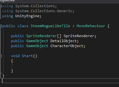 We now need to create a script called SteemRogueLikeData it will contain enumerators and structures for data types that the other scripts will use. It will not have a class and none of it will actually be executable itself.