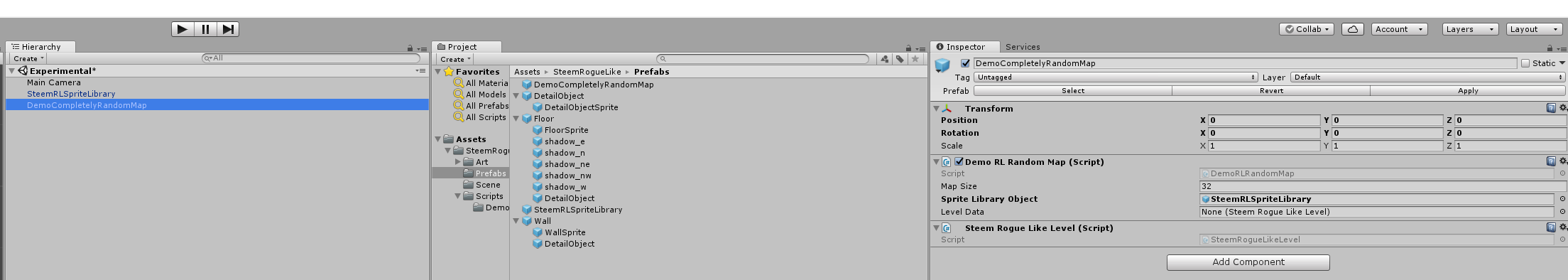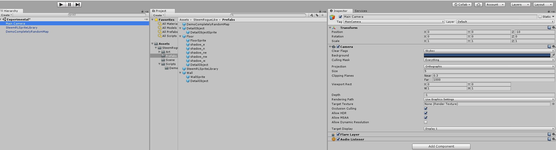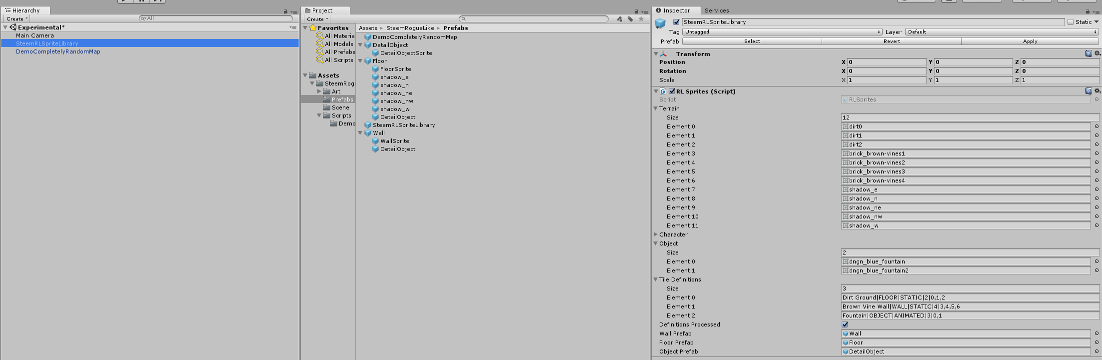 In this part of the tutorial we'll demo a completely random level and will play around with the RLSprites script a bit so you can see how easy it is to make changes. This tutorial began in post [001] though the previous post [004] covered the scripts in detail that are doing the majority of the work in this particular demo that we are covering here.