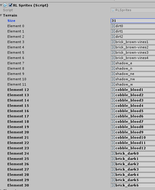 I'm going to add some more sprites to the Terrain and Object RLSprites script.
