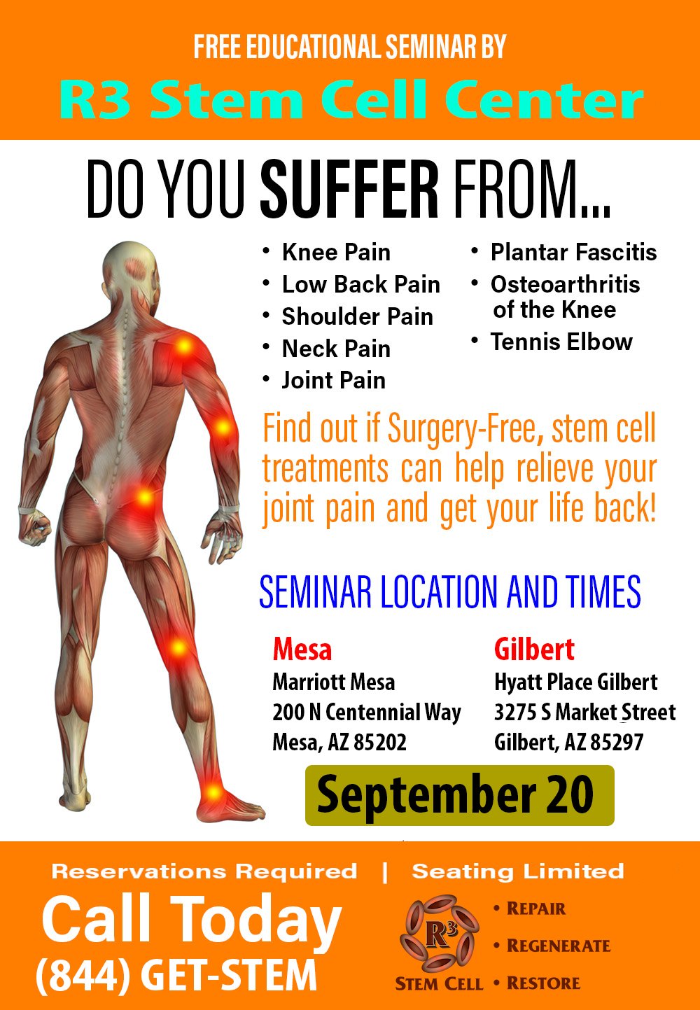 In this seminar, you will get detailed information from the experts about stem cell treatments. There is also an Questions And Answers session so you will tell your questions to expert and they will answer. Say goodbye to your chronic pain and other joint pain diseases.