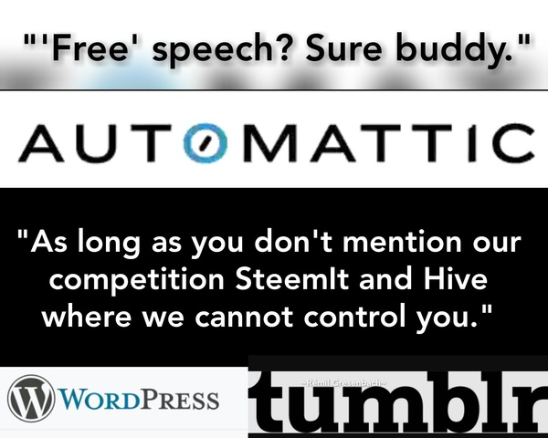 Furthermore, Automatic appears to desperately wants to keep some form of control over the internet, with their gigantic and unhealthy share of the market. A significant percentage — something like 42% or more — of all websites on the internet runs on WordPress code. While the code is open-source and users can download it for free for self-hosting elsewhere, their WordPress.COM blogging platform is pretty controlling, and limits new bloggers on true free speech. Real free speech is often controversial, and to me it seems Automatic does not really tolerate that, while they claim they do.