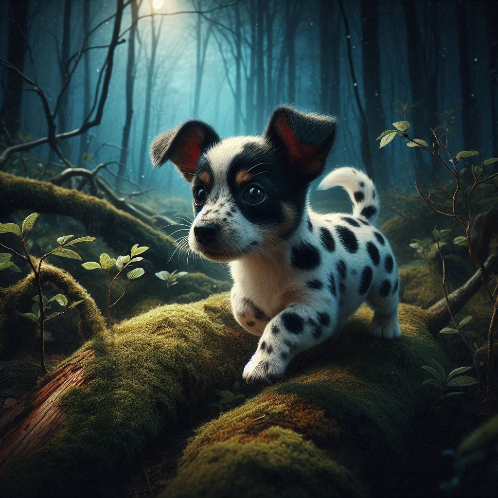What was that walking around my hut? I hurriedly grabbed the little food left and listened to the scratching. Was it an animal? I heard sniffing and suddenly a small spotted dog stood in front of me.