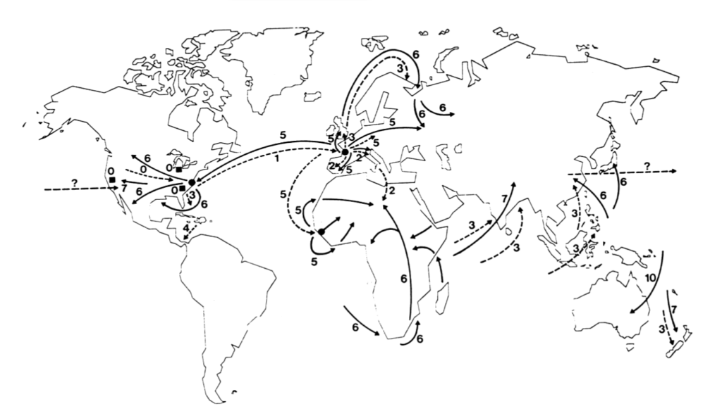 Dans le même temps l’infection avait atteint l’Afrique du Nord en mai 1918 et de là s’était étendue à l’Inde et la Chine, la Nouvelle-Zélande et aux Philippines. Dans ces pays l’infection se propagea rapidement, et s’éteignit tout aussi vite.