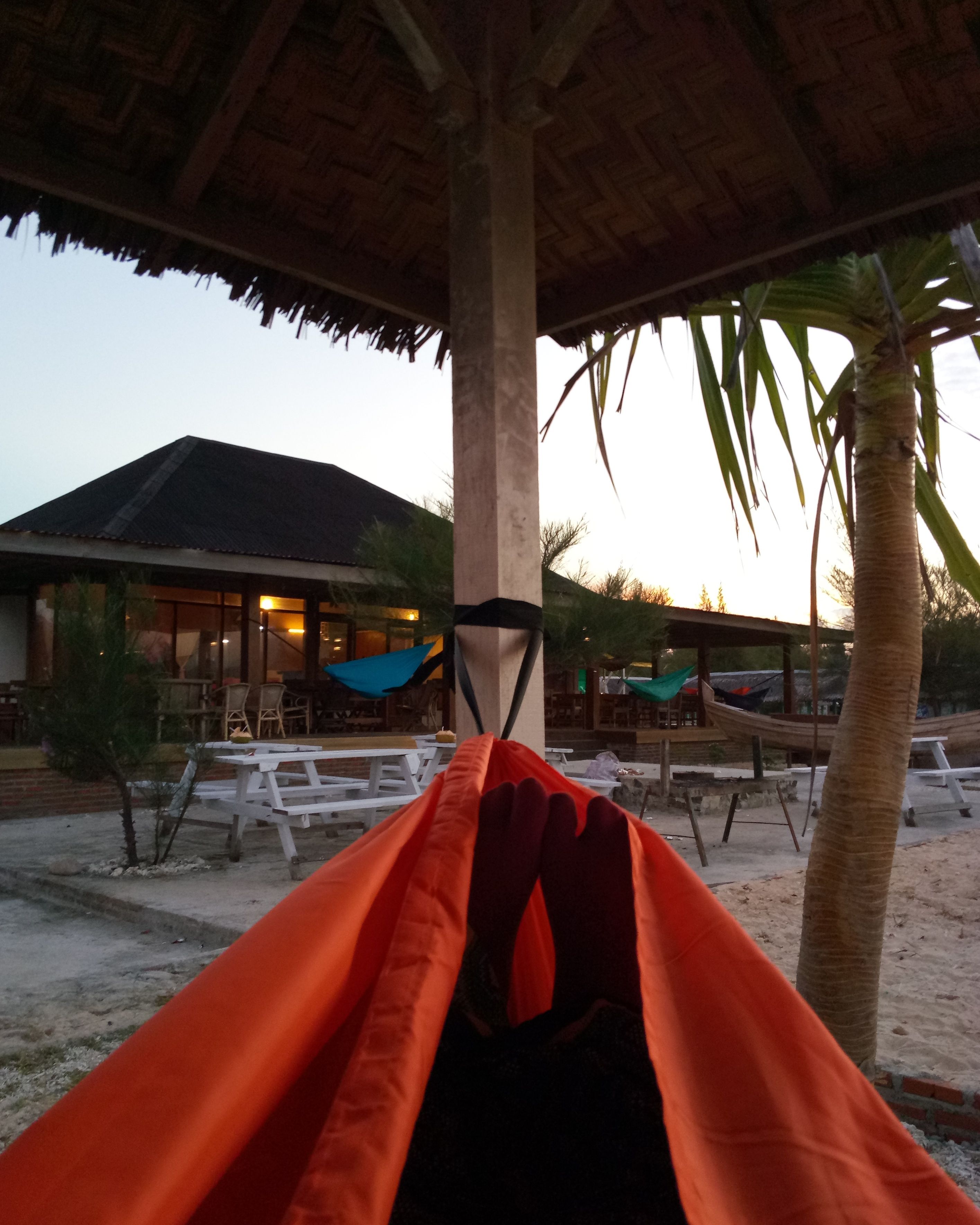 Bangun pagi disambut dengan suara ombak dan angin laut ? Siapa yang gak suka coba. Betah lama-lama terayun dalam hammock kalau seandainya gak harus segera balik ke kota, ke acara berikutnya.
