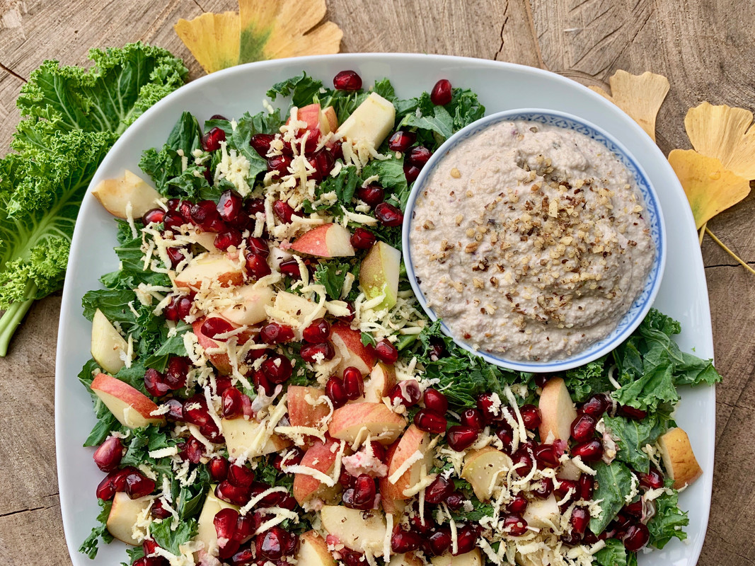 Winterly Kale Salad with Apple-Ginger Hummus (Raw+Vegan)