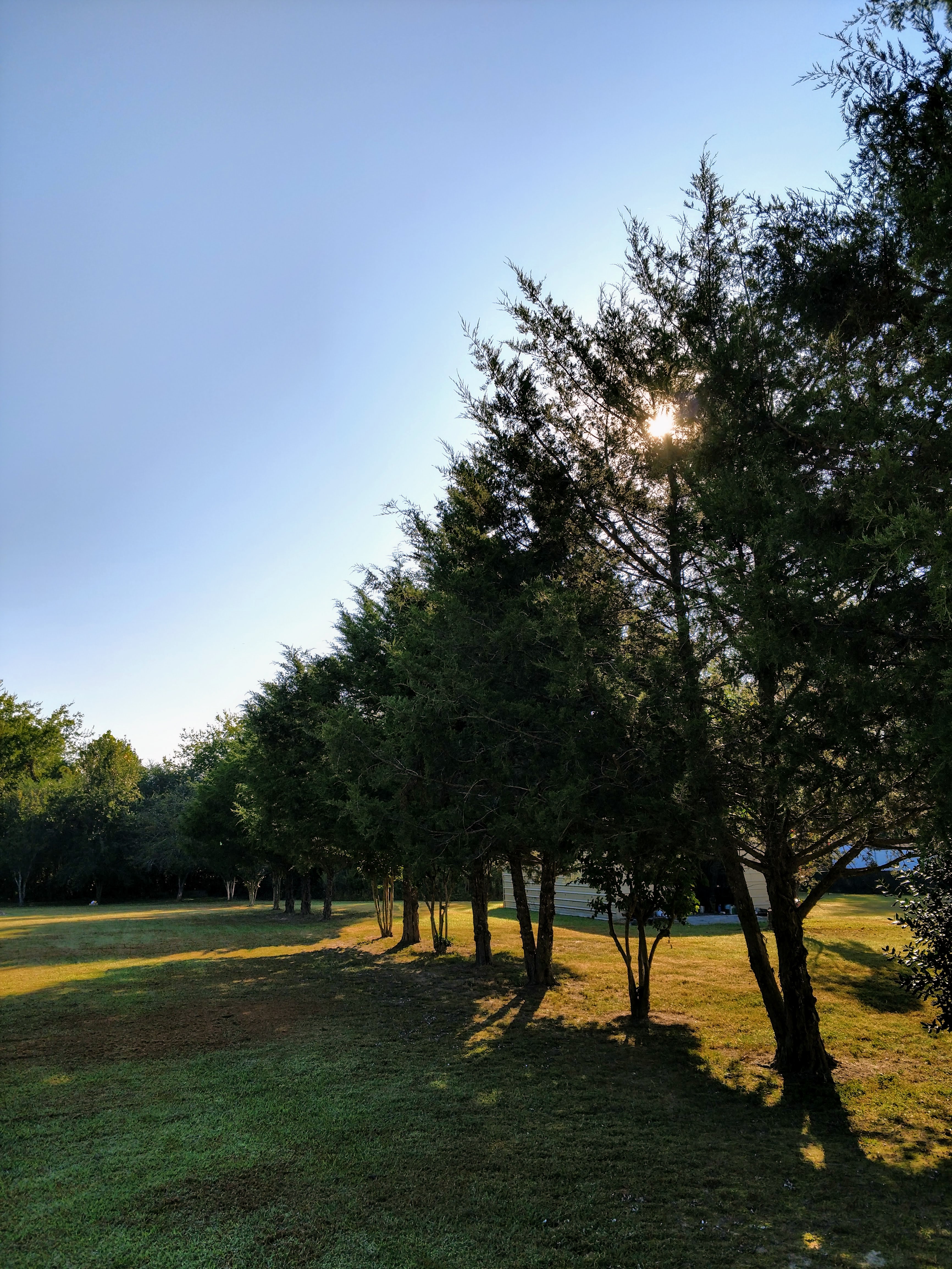 Despite the heat still being quite oppressive around here once the day gets going, at least we woke up Sunday morning to a beautiful cooler start. While he had his to-do list going, his mom and I decided to head back into the yard to pick some more pears off of their tree. All the way in the back of their yard they have quite an impressive pear tree. Apparently it has done well this year. She already picked enough to jar a mega batch of pearsauce (like applesauce but with pears). I think she said she made 15 jars. There were plenty left for us to get our share, though!