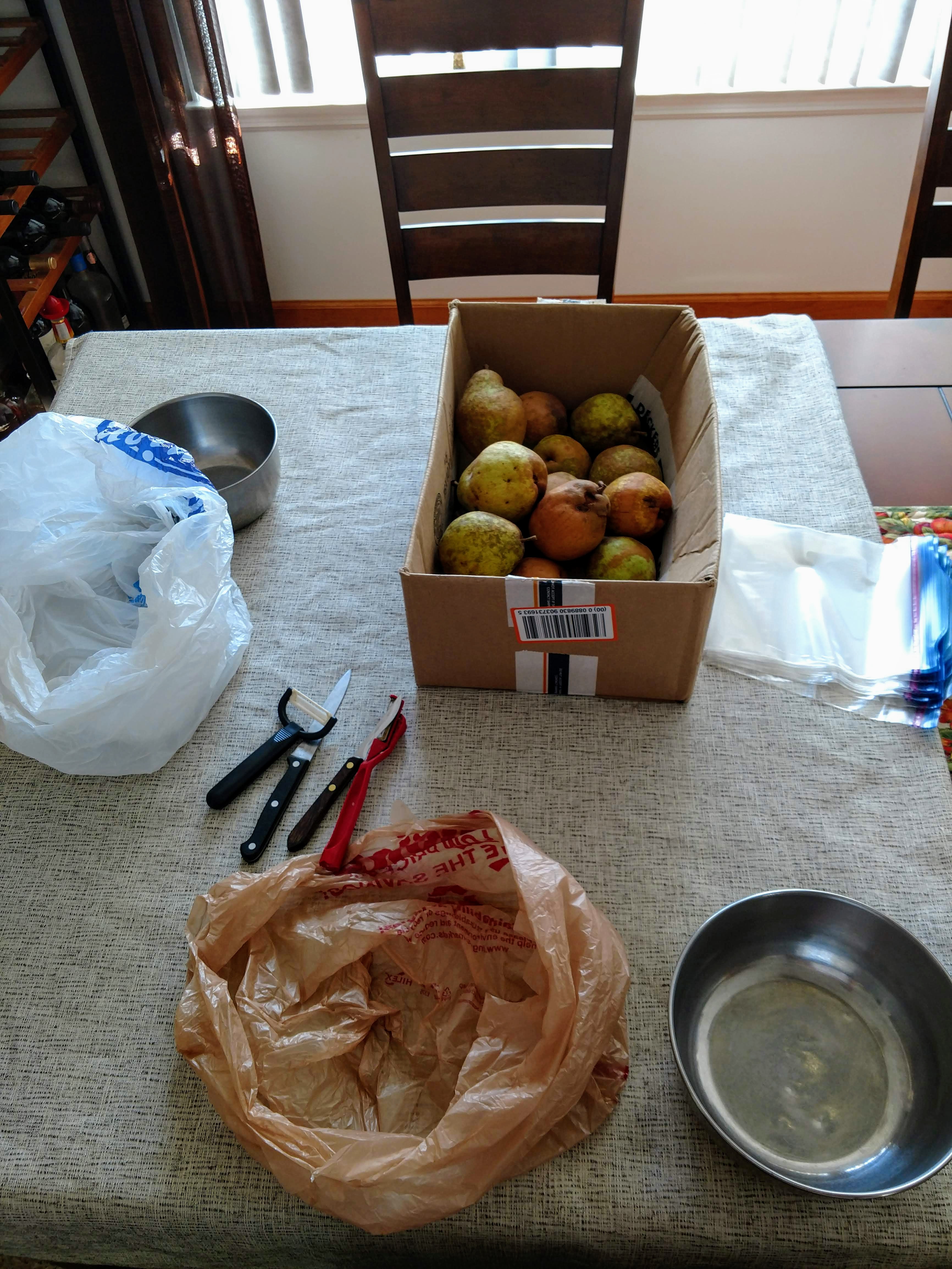 Bonding time with family doing a monotonous task makes the job easier, and memorable when you look back on those days. We do not grow pears but we have imported ones. But I don't think they taste near the fresh ones.