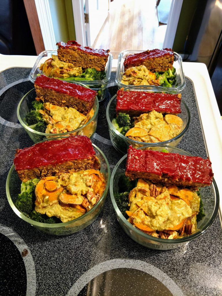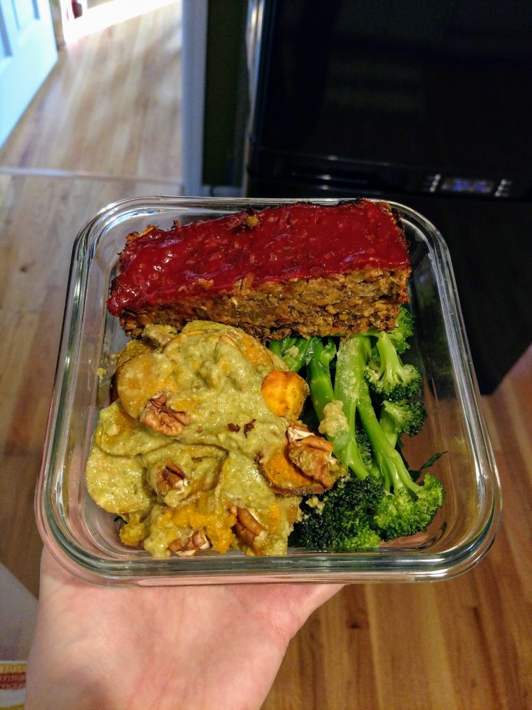 To finish out the rest of my meal with the broccoli, I made another batch of my scalloped sweet potatoes and a new mushroom lentil loaf. A little more labor intensive than some of my usual meal prep, but worth it for a really comforting meal.