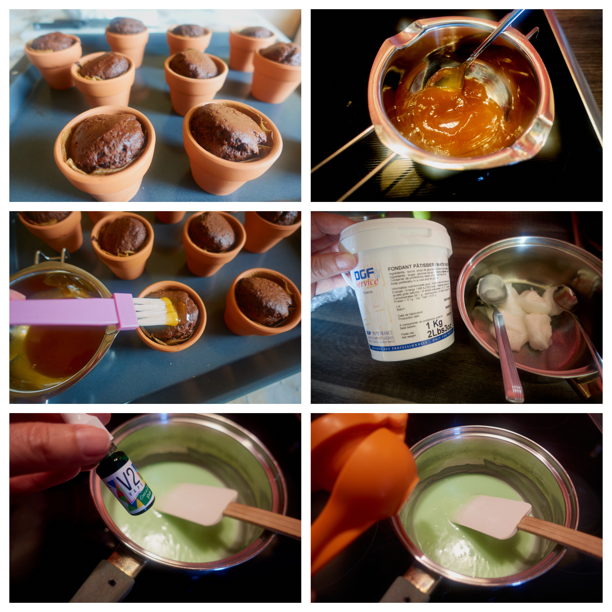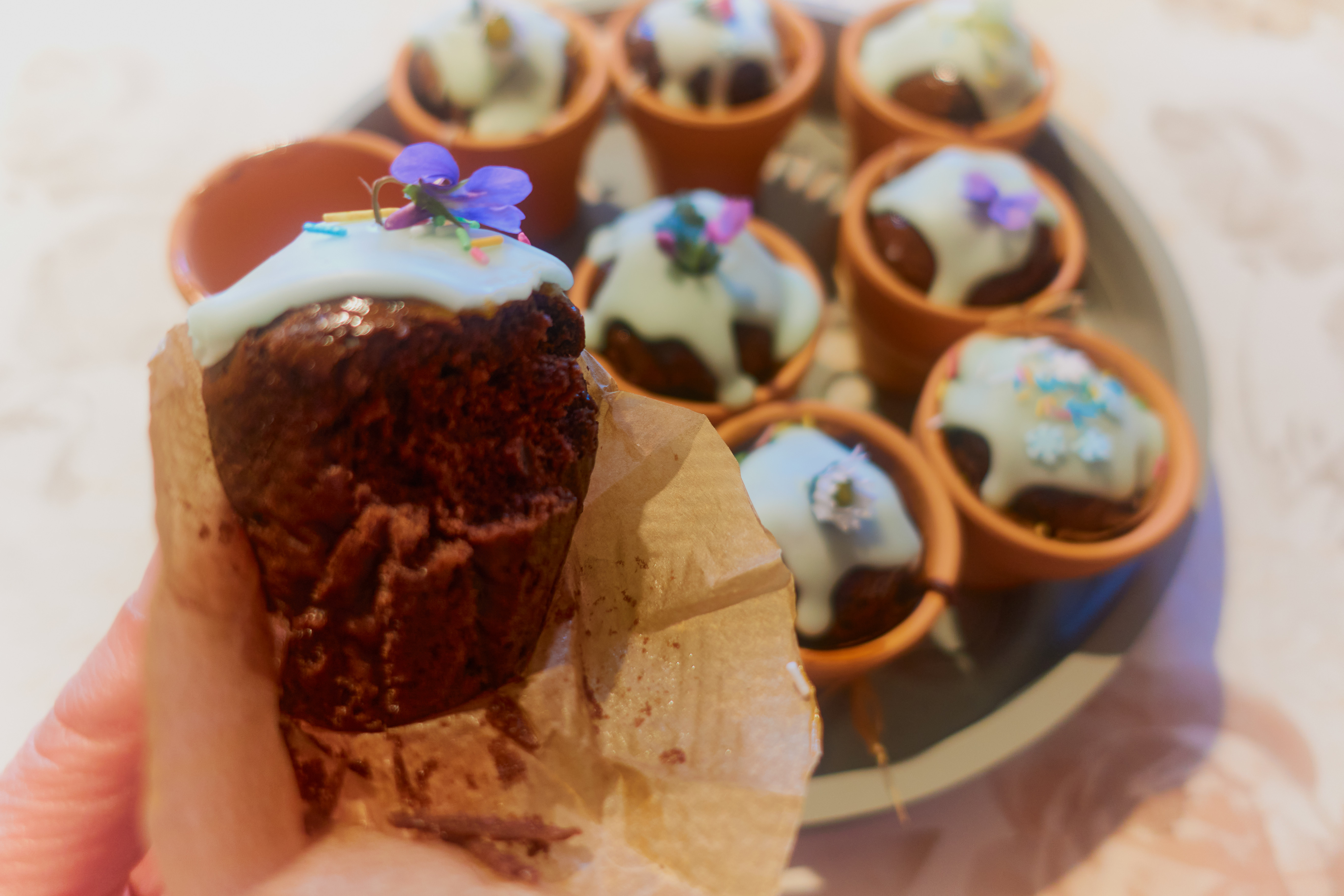 Spread the dough evenly into the flower pots and bake for about 22-24 minutes.