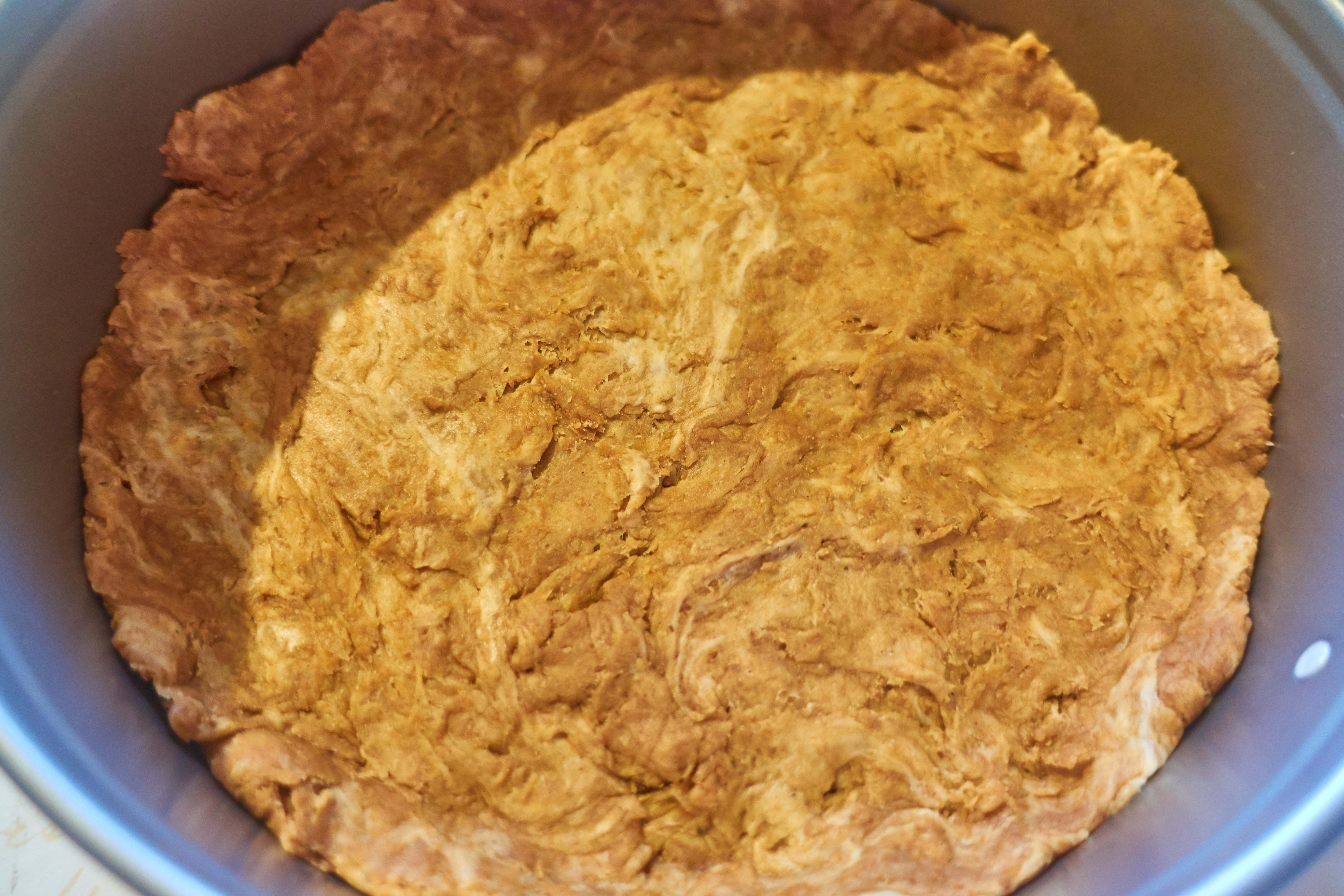 Grease the bottom of a springform pan Ø 24 cm Put the dough into the mold and press it flat, forming a small border.