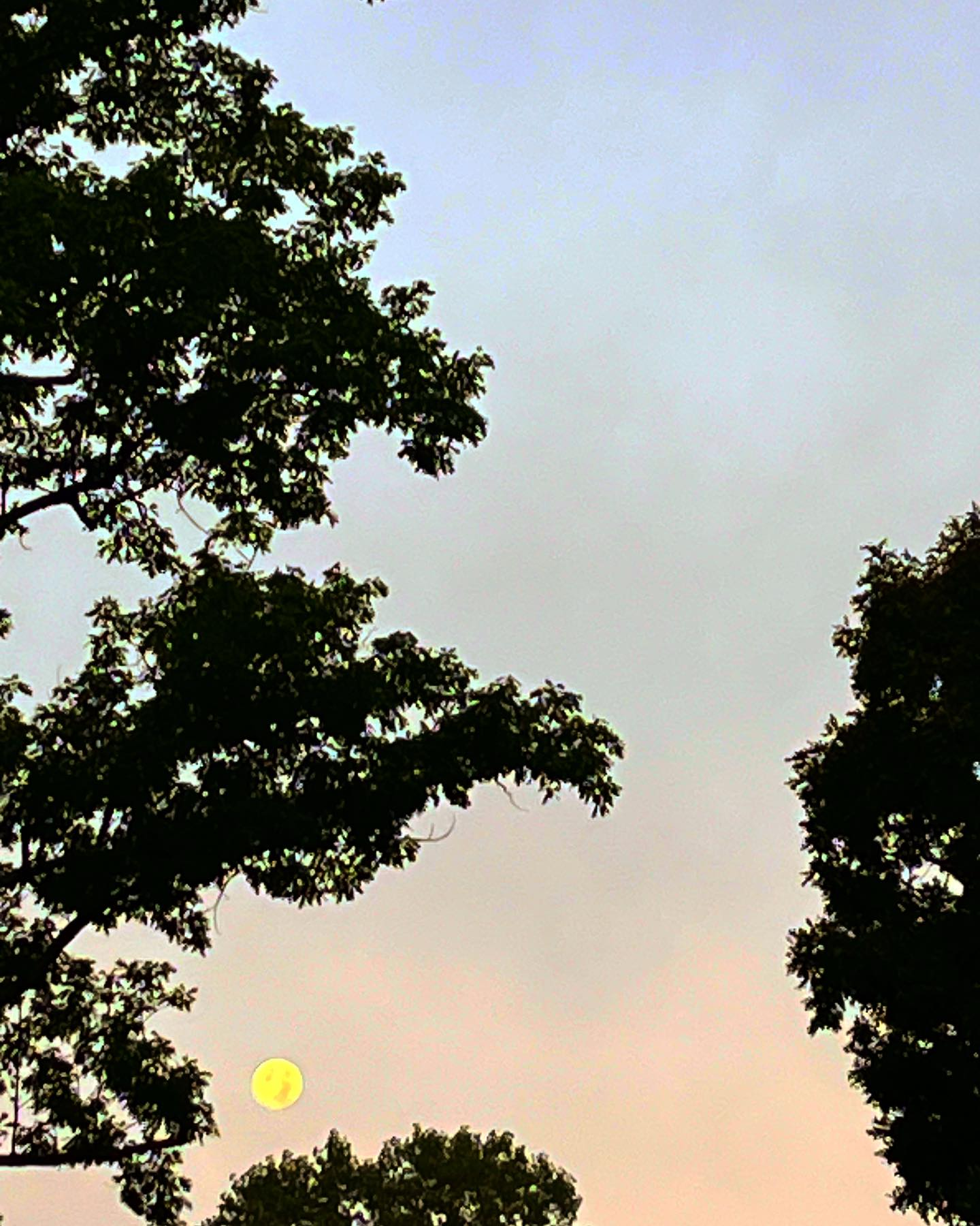 it is full moon in beautiful sunrise, i do not beleive it, this view, hope you all are watching it first time , so if you liked it then do not forget to appreciate me, it is really handsome view, beautiful nature, trees and one full moon day, it is day not night,