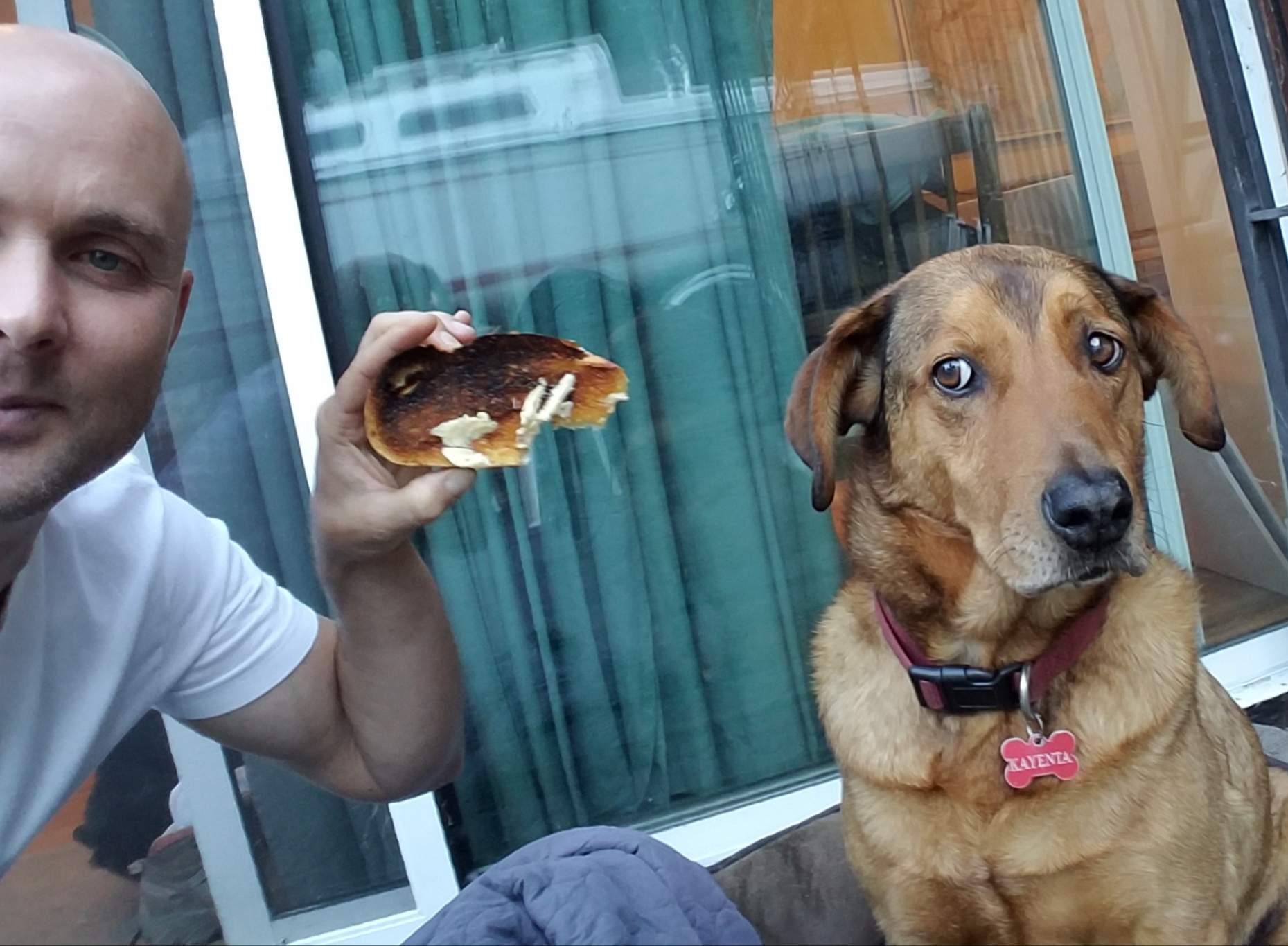 My doghappymoneyman (70)in #fun • 8 years ago Is kinda scared of this piece of bread that looks like him Posted using Partiko Android #funny #life #creative #pets #partiko