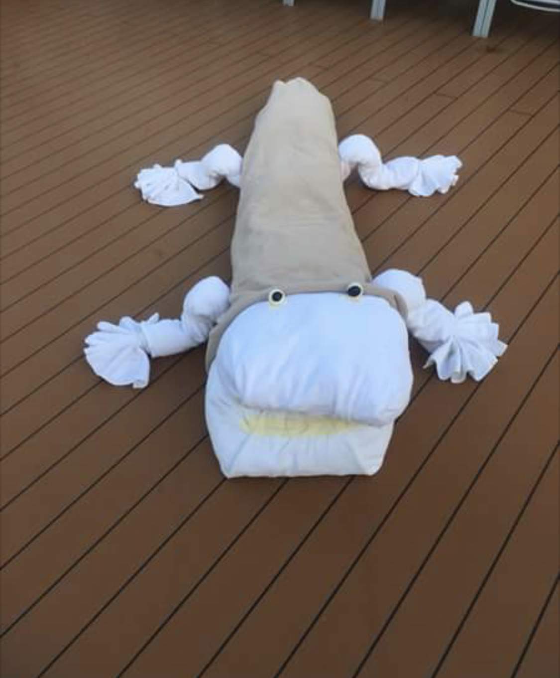 Part 2 of Fantastic Towel Beastskarega (56)in #fun • 8 years ago Here in the Caribbean isles we have what the Caymans call a crocotile. Posted using Partiko Android #photography #wildlife #crocodile #towels #partiko