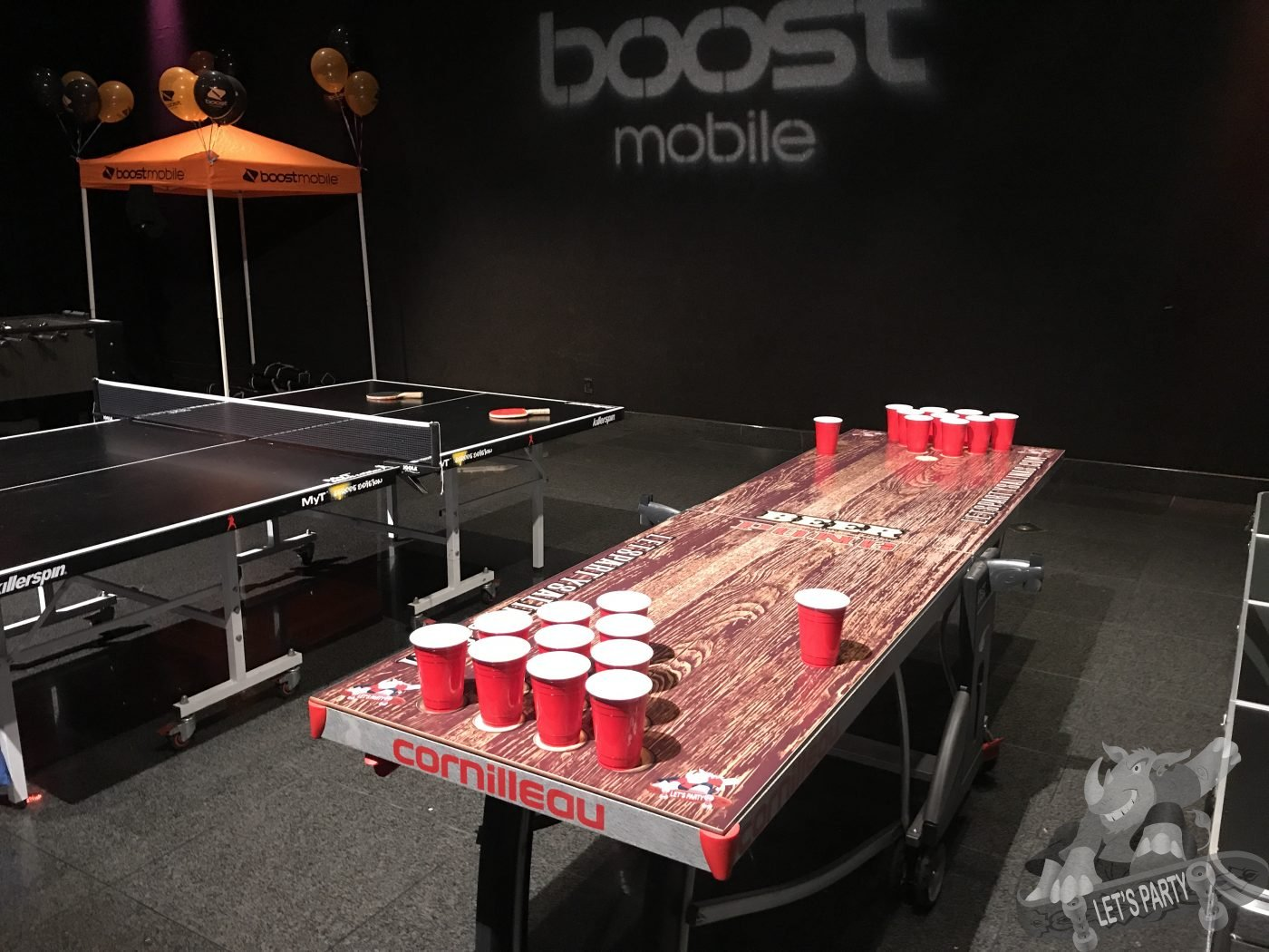 It is a drinking game in which players throw a ping pong ball across a table, a pyramid formation of half-filled cups of beer are arranged with the intent of landing the ball in a cup of beer. The game begins with the first team attempting to shoot ping pong balls into the opponent’s cups from across the table.