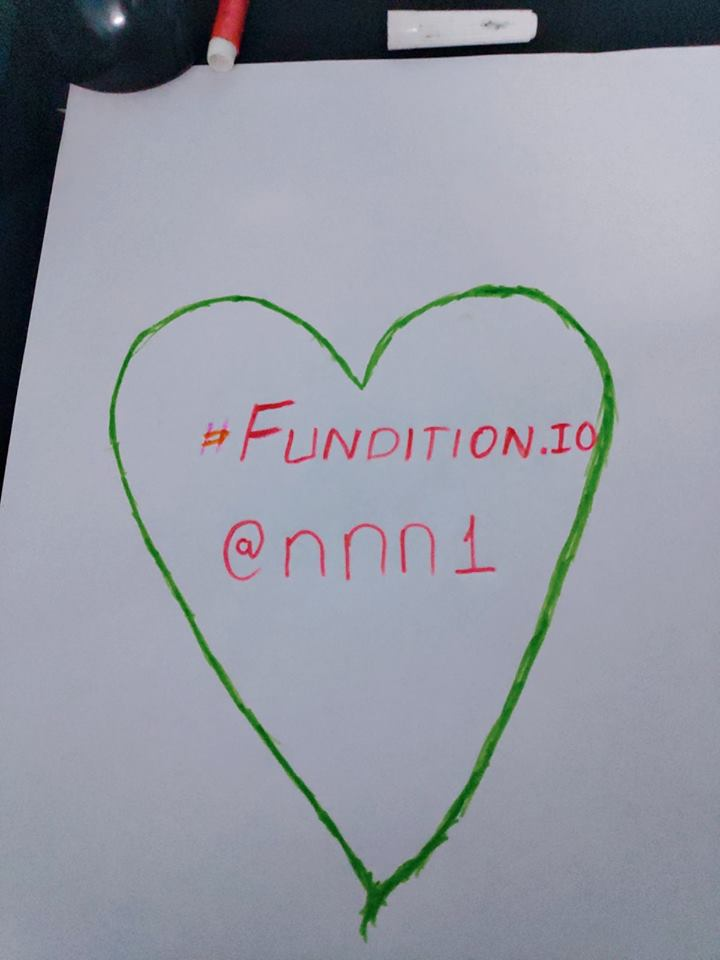 The image has to contain the "Fundition.io" text written on a paper, wall or whatever is handy for you and depends on your creativity you have a chance to get a bigger upvote. (Keep in mind we don't approve/support illegalities like writing with graffiti on public buildings or other things like that. Stay Creative and Clean)