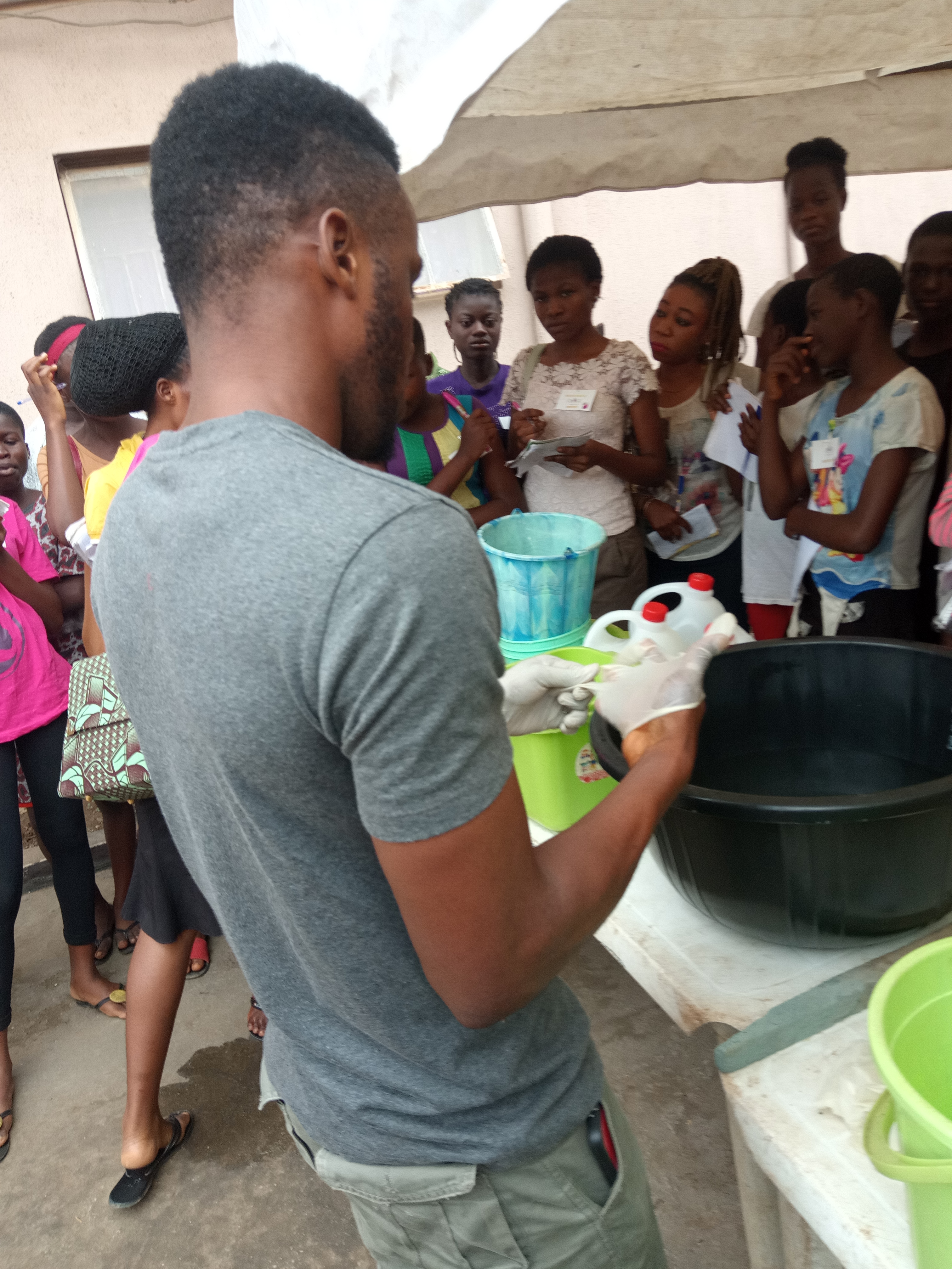 the liquid soap making class was taken by @stevendion , he gave the rules and preventing measures to be taken during soap making, he lectured the students on how to get the accurate measurements of chemicals and water during liquid soap making, he was assisted by @thomasgift and @charlesrecycler who gave answers to the questions delivered by the students.