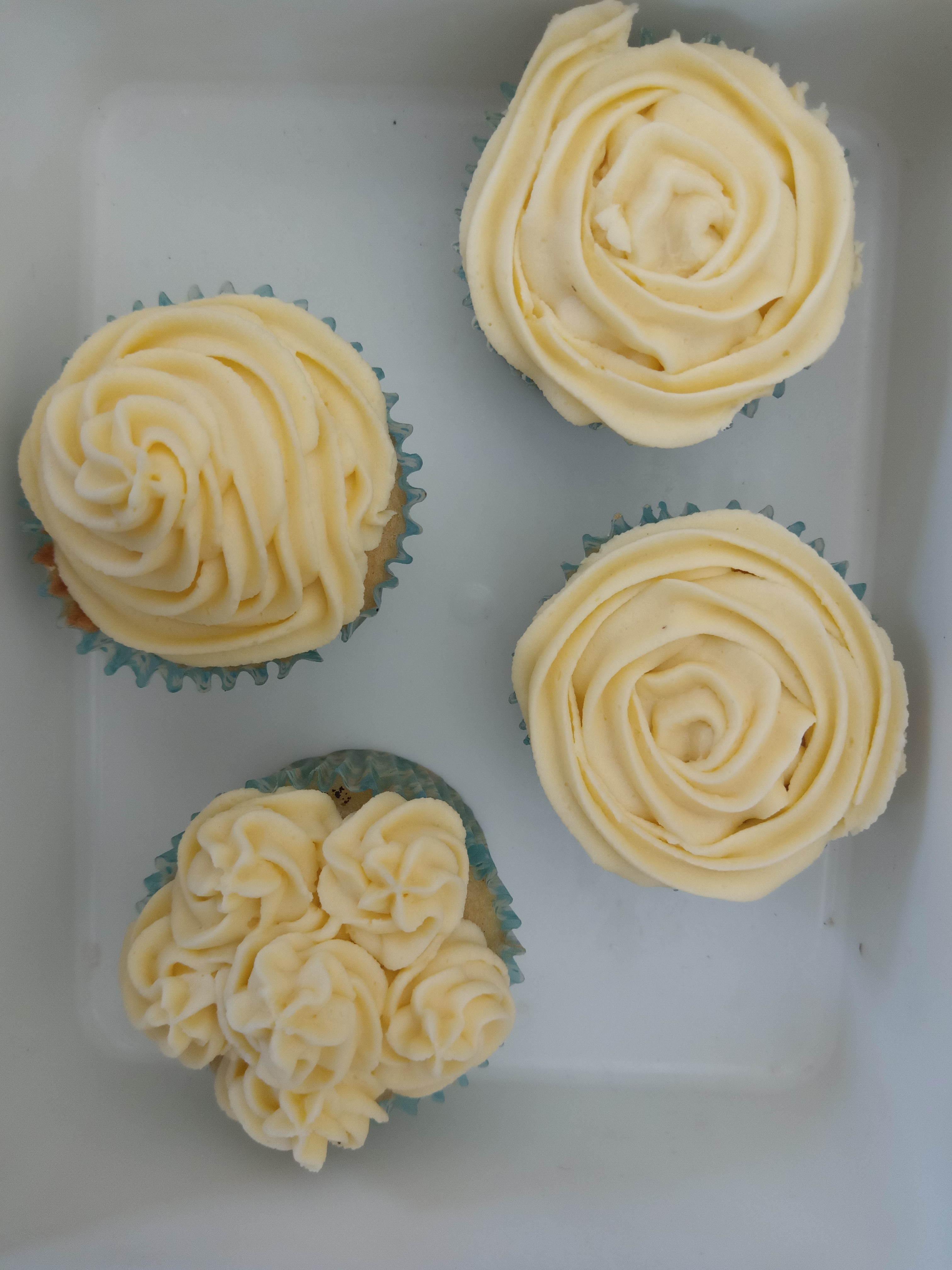 finishing touches was made on the cakes baked during the last class. the finishings is called butter cream icing, the cakes were decorated with floral like cream , giving them a perfect look of cupcakes..