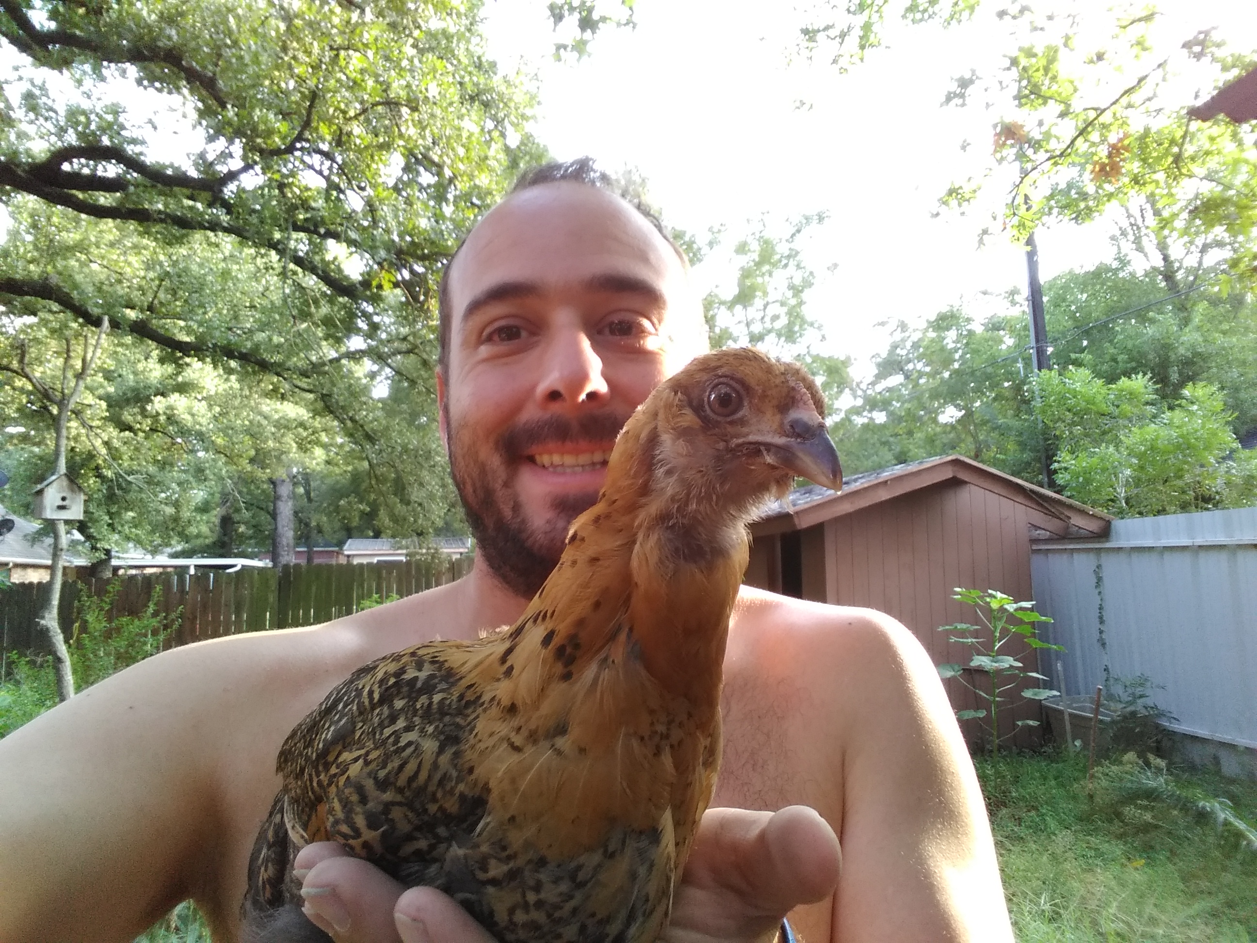 I think the littles are the birds that @makinstuff funded when he helped me create the Permaculture Chicken Fundition Project. They were sold as pullets, but TB ended up deciding she was a rooster. Thus the "Tail Baby."