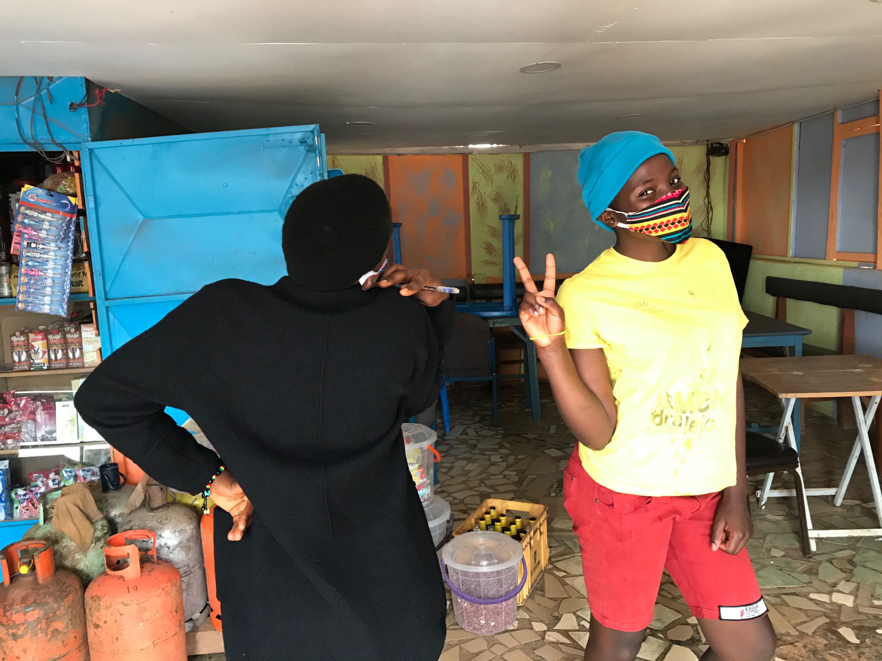 In a bid to raise anxiety of our project, we donated two masks to two IDPs who were very excited about our project.