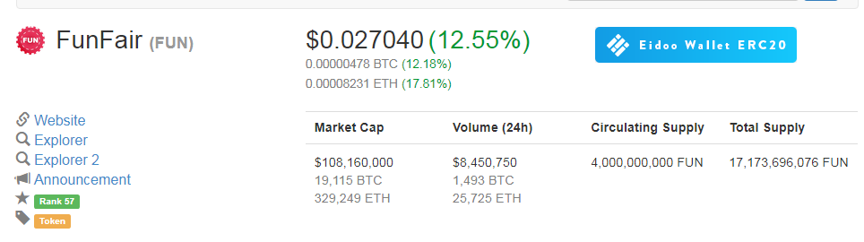It is available on all major exchanges like Bittrex, HitBTC, Novaexchange, Binance and EtherDelta. So buy Fun and hold till 18th OCT. Please upvote, comment and follow if are making profit out of it.