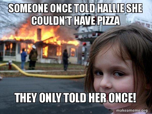 MEME Nr.2 - [MEME] Someone once told Hallie she couldn't have pizza :) :'> [funny life]