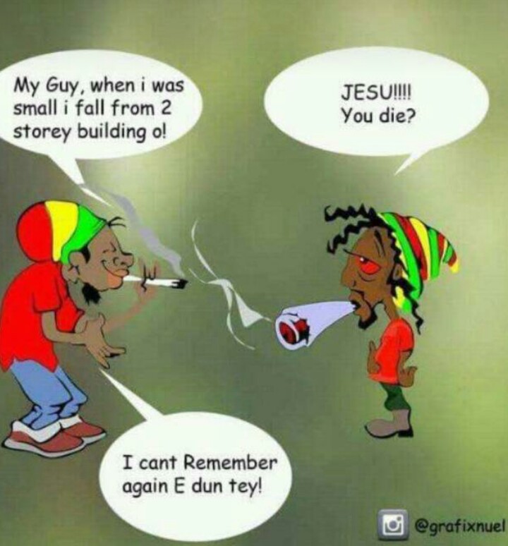 Imagine a guy telling his friend that he fell from a two-storey building when he was small and his friend was asking him if he died. Seriously? So you see, what taking weed has caused for them. Too bad.