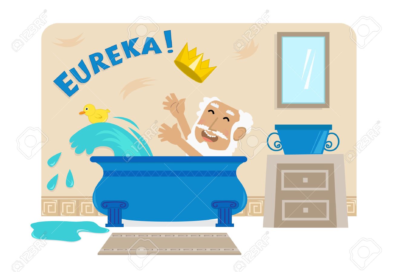 He was so excited by his discovery that he jumped out of the tub at once, and ran all the way home without remembering to put his clothes on, and shouting ‘Eureka, Eureka!’ – which in Greek means, ‘I have found it! I have found it!’