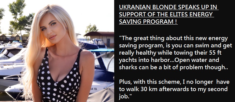 Other proposals to reduce the unnecessary use of fuel, include making all Ukrainian blondes escorts who provide 'services', now walk to their bookings instead of being driven.