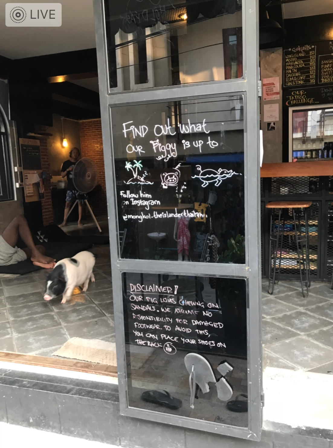 The fact is that a cute MICRO-PIG was an outstanding feature of that coffee shop… And this piglet among everything wouldn't mind to make a feast of... shoes!.. :)