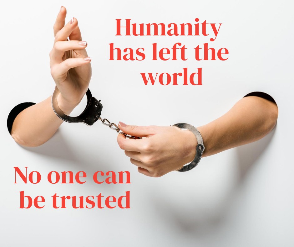 The thief was about to break into the house late at night when he noticed a note below the cupboard. It said "Pressing this button will open the cupboard." The thief was curious and decided to press the button. Suddenly, the siren sounded! The police came and caught the thief. As he was being led away in handcuffs, the thief started saying " Humanity has left the world, no one can be trusted.