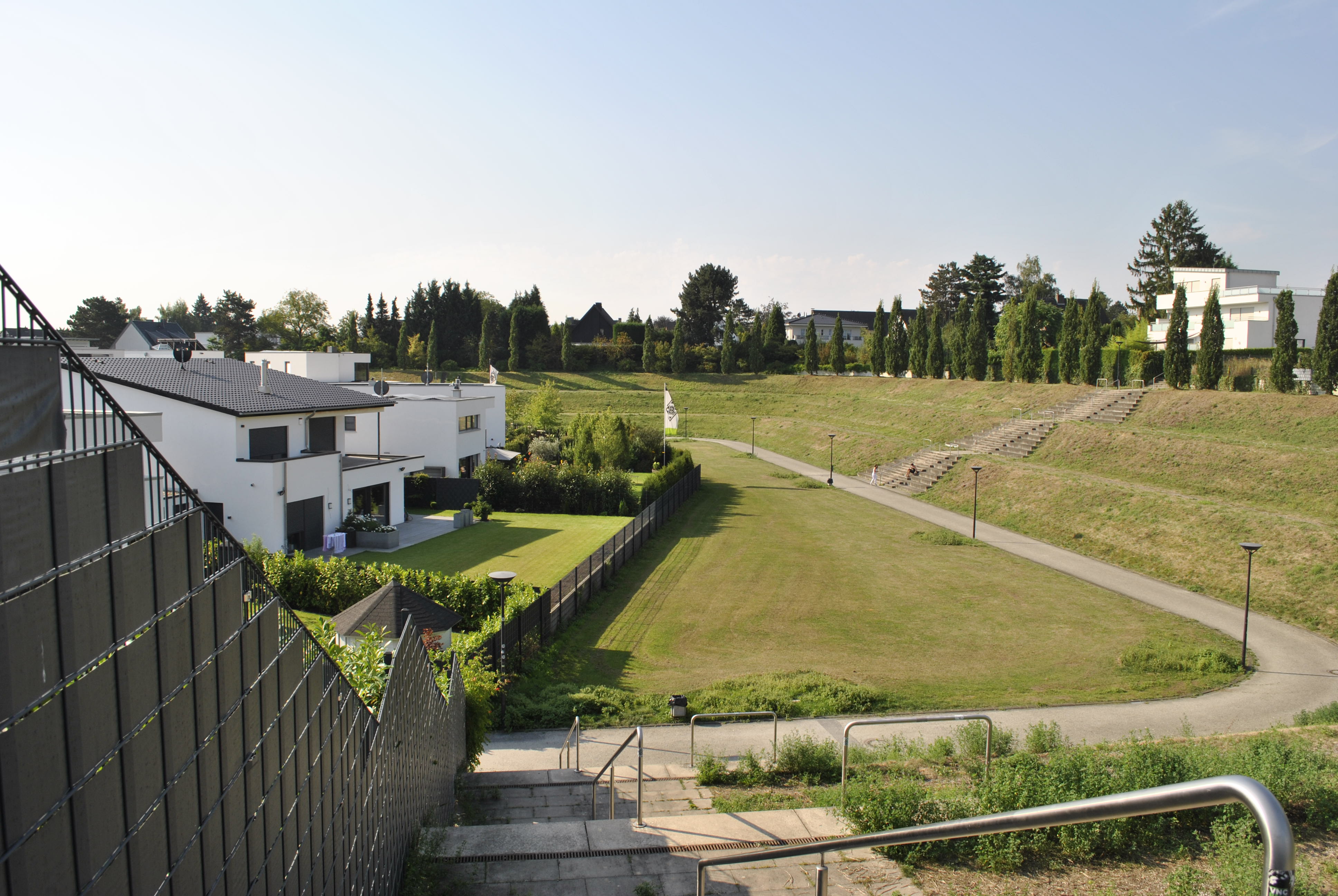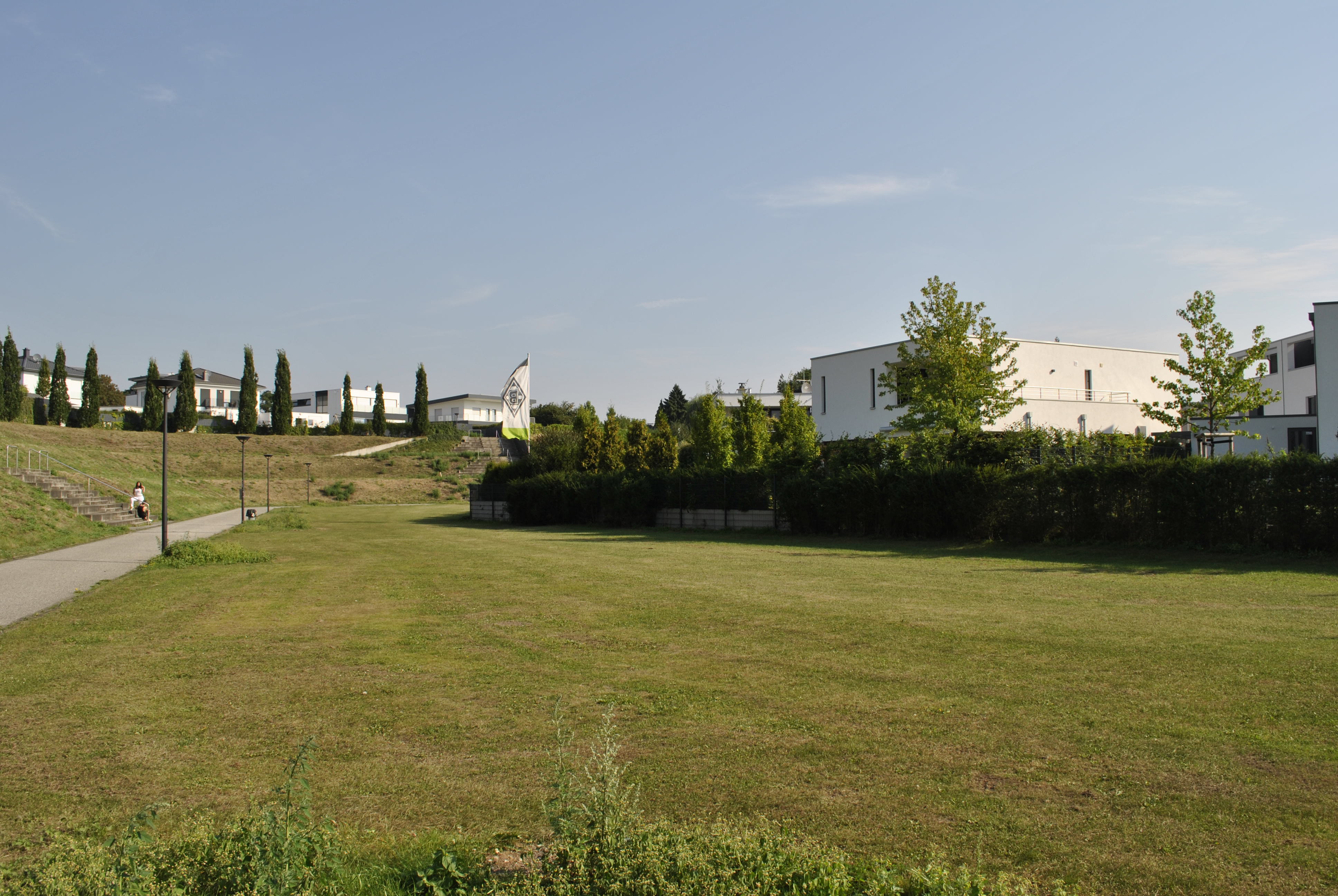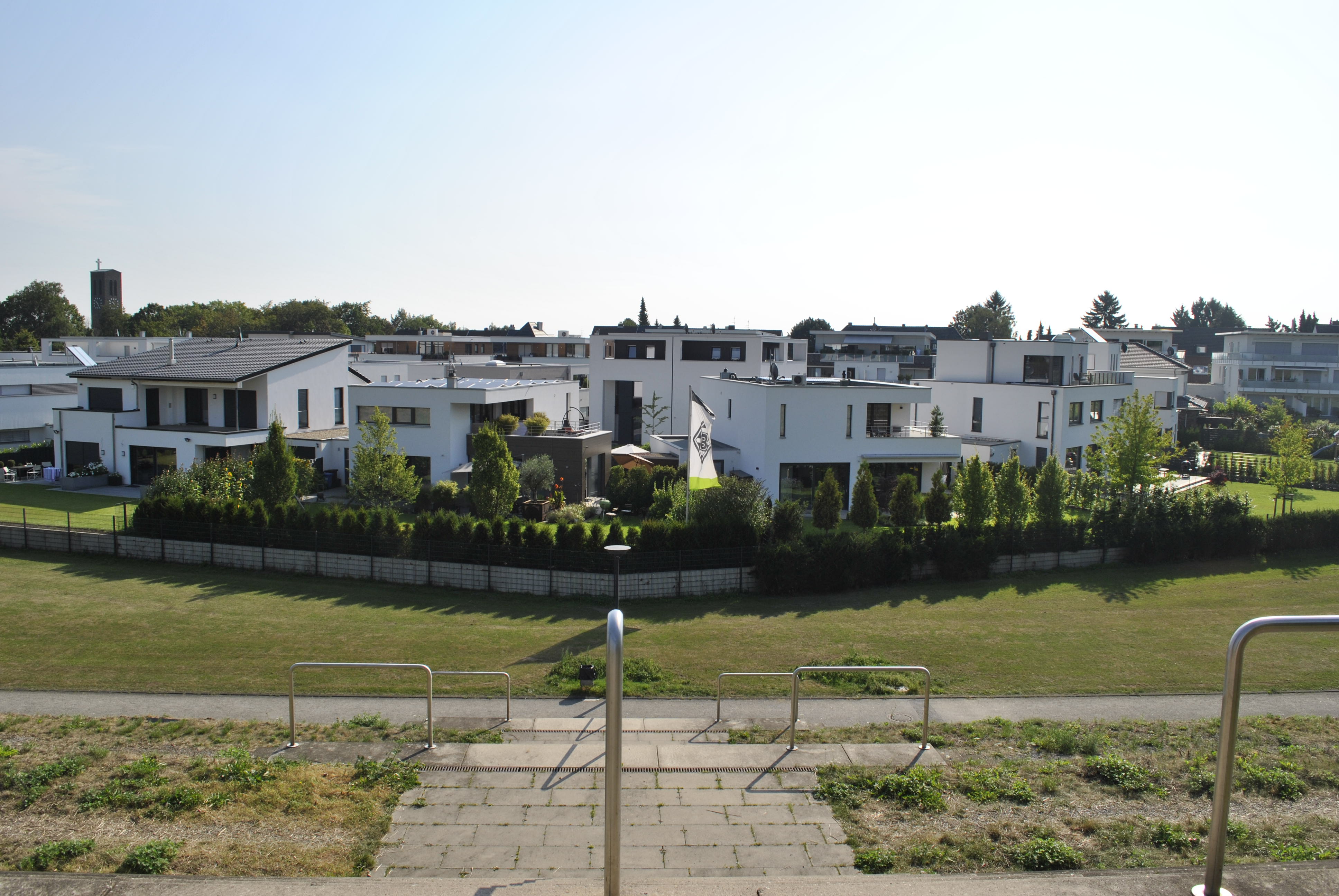 mitten auf dem "heiligen rasen" standen jetzt jede menge häuser.