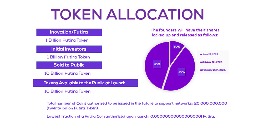 - Coins Available to the Public at Launch : 10 Billion Futira Coin.