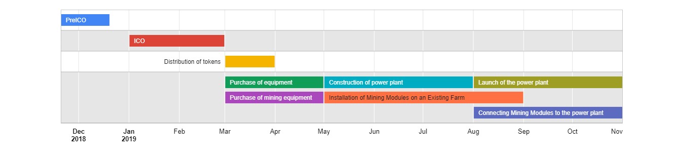 Future Energy will spend a part of the funds raised during the ICO on the purchase of ASIC miners with a total capacity of 14,500 th (the capacity will depend on the amount collected during the ICO). ECOMINING will work on clean eco energy, for which you will not have to pay. The Bitcoins will be distributed on the basis of a smart-contract by the following principle: 80% of Bitcoins production will be distributed among ECOMINING members, and 20% will be spent on maintenance, repair and purchase of new equipment. The Bitcoin distribution will occur on the 1st day of each month.