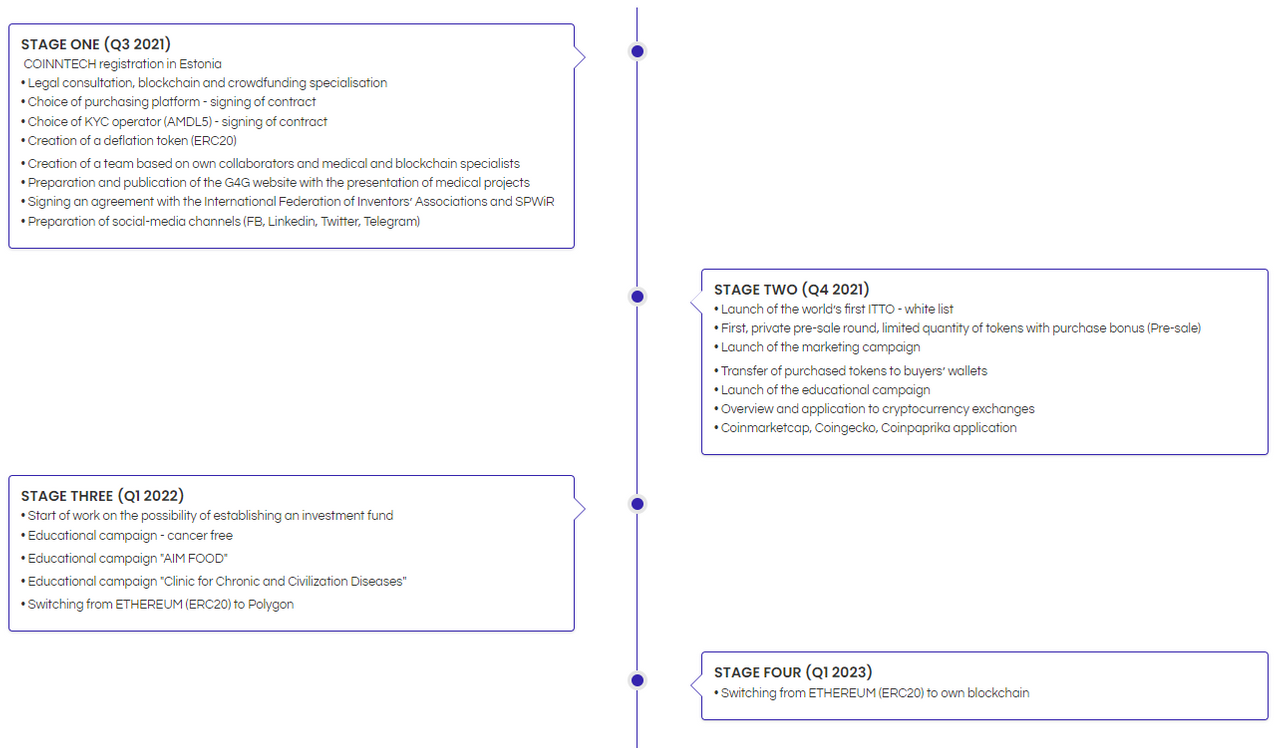 G4G project by Coinntech team was created to transform digital assets for various purposes where it'll use blockchain technology to enable transfer practical knowledge and simultaneously implementing the creations of the new kind of mind through new blockchain-based inventions. The G4G idea is to build public awareness of new health industry and other sector rthrough the use of digital assets. Their team will implement comprehensive solutions for health issues by technological, political and economic development and other various sector by accelerating health education through the the accelerated technological system. Coinntech as a the main creator team for this token will have primary obligation arising from the sale of G4G tokens where they'll providing every users with access to educational materials in the series by sharing the results of their years of work and research, their team will also implement further technological ideas where it'll implement blockchain technology to the system.