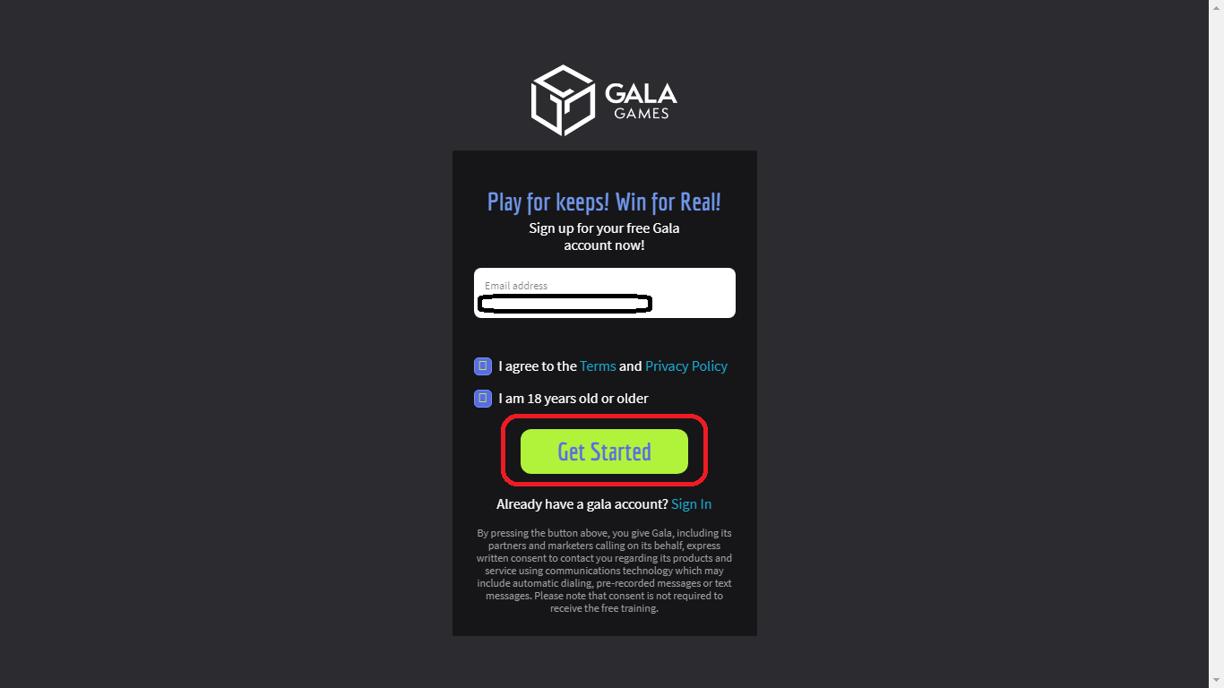Once registered, you will be on the home page press the button "PLAY NOW!"