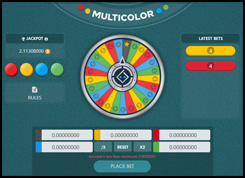 The Bitcoin Dice jackpot currently stands at around 0.23 BTC, while the Multicolor jackpot contains a whopping 2.11 BTC. The values of these jackpots will change after this article is published & keep in mind that Bitsler supports multiple different altcoins, each of which have their own jackpot!