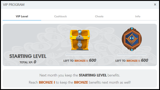 For every $1.00 you wager on Bitsler, you receive 1 XP point towards increasing your VIP level. You start out at bronze level and can level up to Diamond 1. With each level you increase, you receive multiple prizes in the form of cashback rewards & treasure chests. At the highest level, these chests can contain prizes of up to $35,000.00 (at diamond level), which are distributed using a provably fair algorithm.