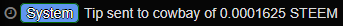 Excited to have our first payout on the Super Roller Betting Promo with power gambler @cowbay hitting the 7,250,000th bet on Steem-Roller.com and winning 0.0001625 STEEM on his lost bet of 0.00000650 STEEM while rolling a 0.0001% bet ( or a 1 in a million chance).