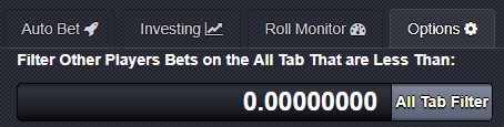 On a side note too, you can now filter the bets in the all bets tab to filter out small or large bets.. Rather than being bombarded by dust bets you can set your filter to wherever you like and enjoy watching the rolls you want to see, none of the ones you don't want to see!