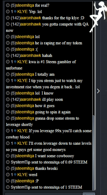 ( a screencap of the new expandable chatroom, complete with stripper! )