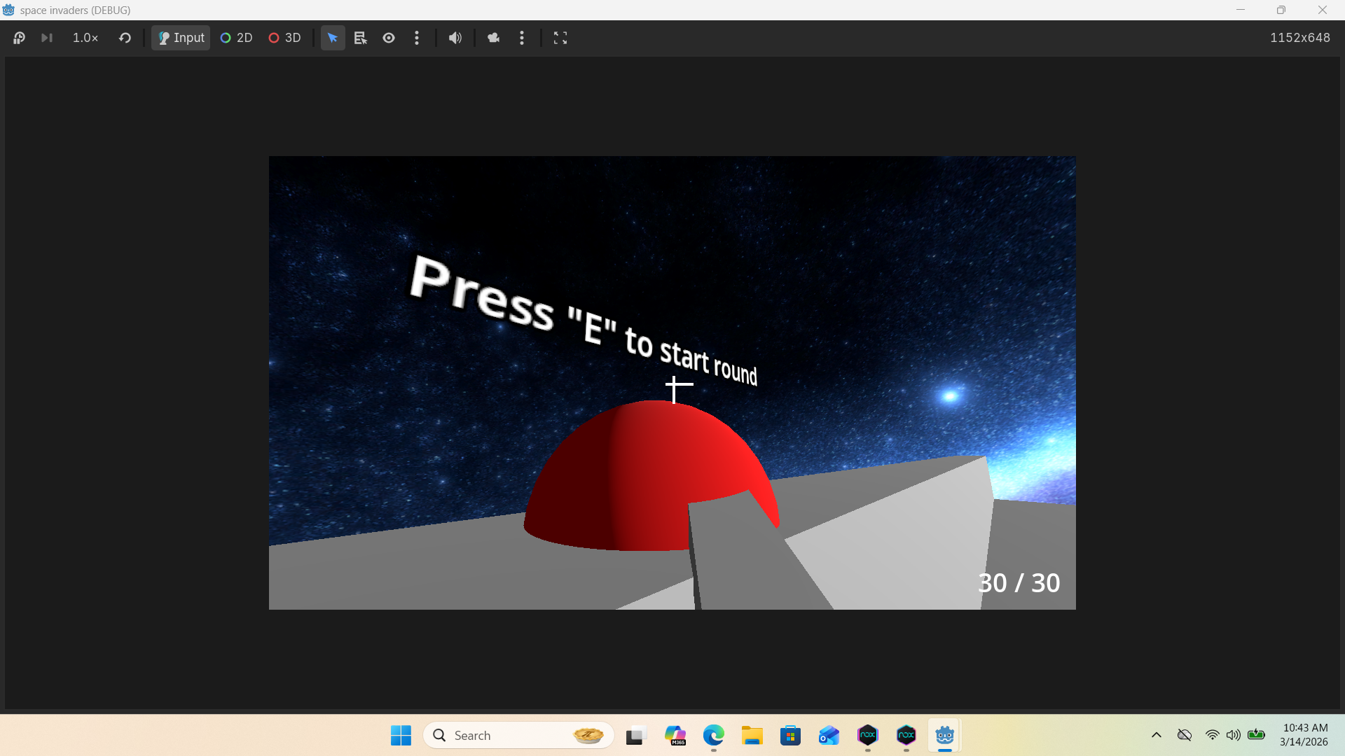 Im finally creating my first video game. my grandpas favorite videogame was always space invaders. when he was young he used to go play it in the arcade, so i decided to learn gdscript and how to use the godot game engine so i can create a 3D space invaders for him. its in its early stages ive only been working on it for 4 days so not everything is perfect yet and i dont have 3D models or textures just yet.