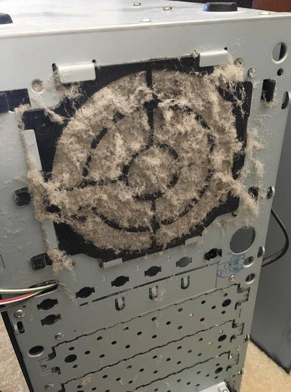 Wooooo, irritating .the owner is to dirty better to use a hair dryer for better cleaning. But this particles can destroy the system better to have a maintenance culture for the CPU to last longer!