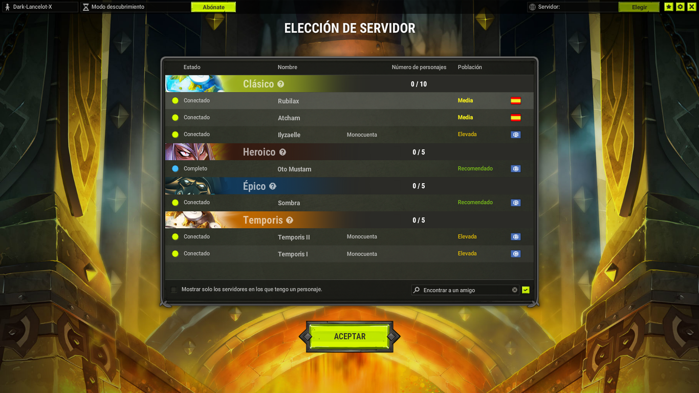 Al entrar en el juego, primero deberás elegir un servidor, algunos tienen ciertas especificaciones, lo más conveniente seria escoger uno de los primeros :D